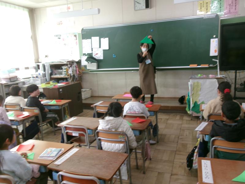 1年生と2年生は、「折り紙の会トトロ」のみなさんに折り紙を教えていただきました。