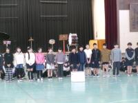 今年度の児童会役員を務めている6年生からの挨拶、新しく役員に選出された4・5年生の役員からの挨拶がありました。どんな思いで頑張ってきたか、どんな学校にしていきたいかなどの話はとても心に響きました。