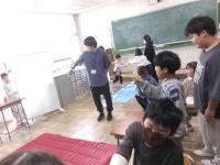 6年生は、家庭科でリメイク作品作りに挑戦です。もう着なくなったTシャツなどを広げ、「バッグにする。」「巾着にする。」と教えてくれました。