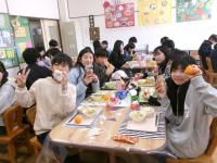 ボリュームも栄養も満点です。とてもおいしい献立でした!自分たちが立てた献立の給食をランチルームでいただきました。