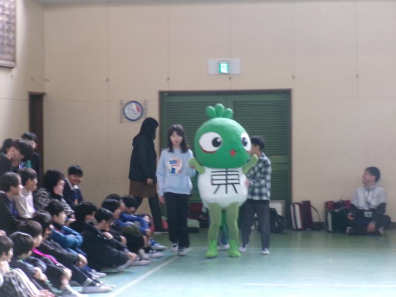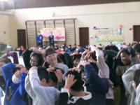 児童会本部さんの呼びかけで「かめっち~!」とかめっちを呼びました。かめっちの登場に、全校児童が大喜びです。