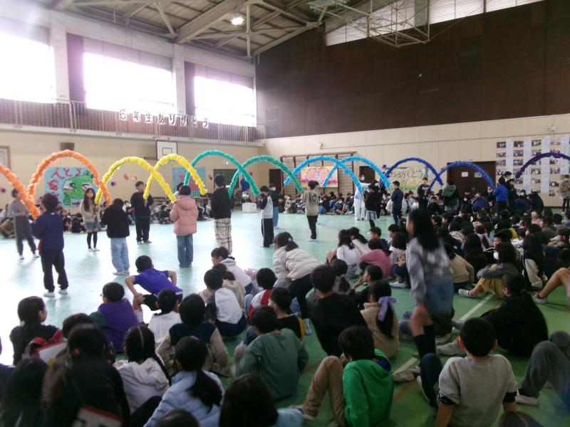 3月4日は、「6年生を送る会」でした。6年生は、1年生からのプレゼントのかめのメダルを下げて、4年生が準備したアーチをくぐって入場です。