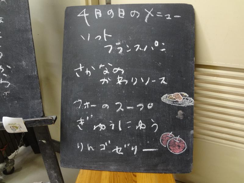 待ちに待っていた給食が始まりました。このミニ黒板は給食室前に置かれています。毎日、調理員さんが書いています。まるで、店先に置かれているランチメニューのようです。