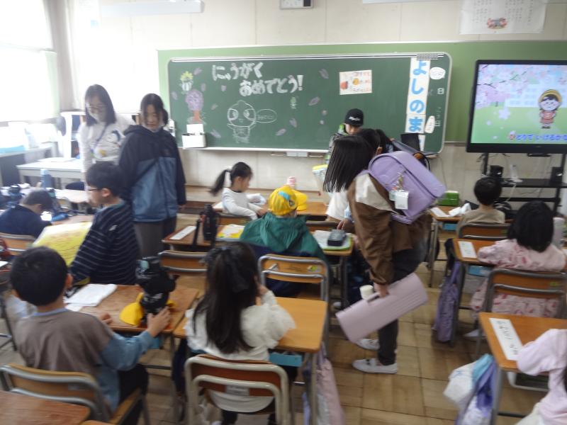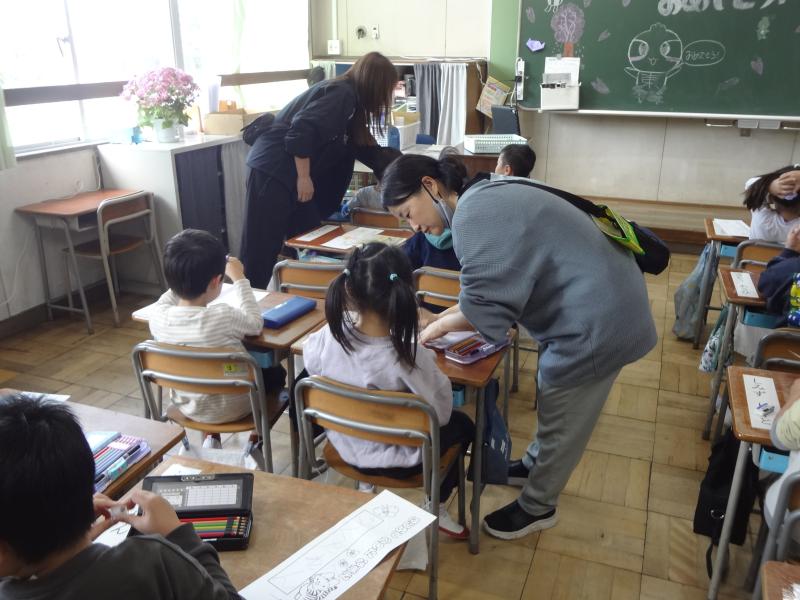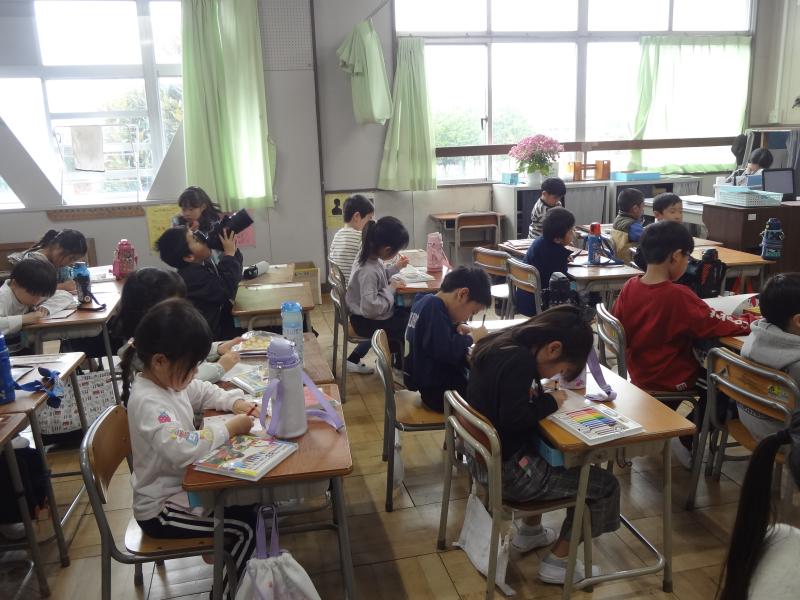 1年生は、初めて使う探険バックやノートなど、一度持ち帰り、お家の人に名前を書いてもらって集める作業がたくさんあります。毎回、準備にご協力いただき、ありがとうございます。