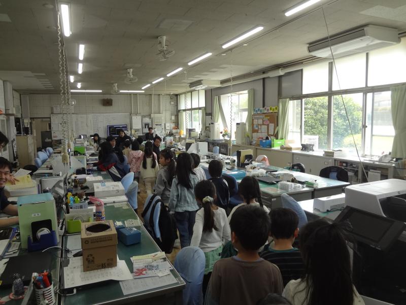 一年生の教室と同じフロア―にある「理科室」の様子です。今日は、5年生の理科の学習です。新しい教科書を開いて、真剣な眼差しで学んでいました。理科室は、教室よりも広く、たくさんの実験道具があり、どんな実験や学習をするのか、楽しみですね。