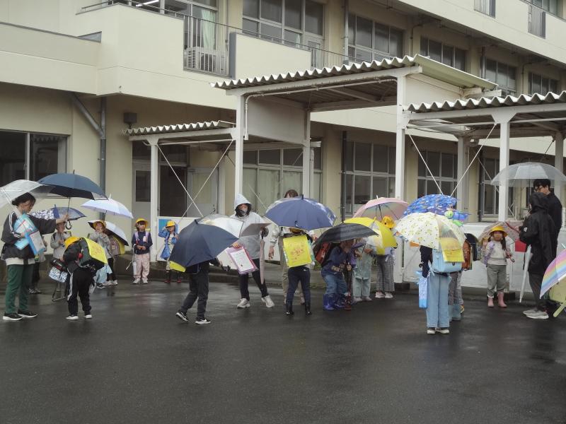 雨の日は、傘で児童の顔が確認できないので、とても時間がかかります。そのため、天気が悪い時は、下校時刻が遅くなる場合があります。雨の中、お子さんの帰りを待っている保護者の皆様には、ご心配をおかけするかと思いますが、ご理解をしていただけたらと切に願います。