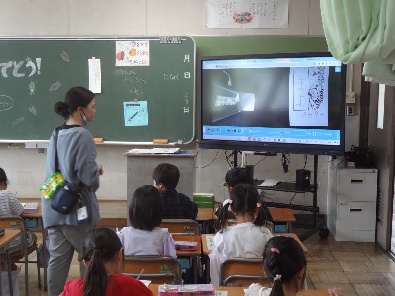 自分の席にきちんと座って、待つことができています。落ち着いた態度で静かに着席している姿が身に付いている1年生は、とても素晴らしいです。
