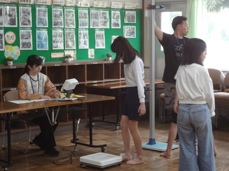 身長測定は、担任の先生が行い、体重測定は保健の先生が担当します。今年から、体重計が新しくなりました。静かにゆっくり乗り、じっとしていないと正確な数値が図れないデリケートな機械です。慎重に乗り降りをしていました。