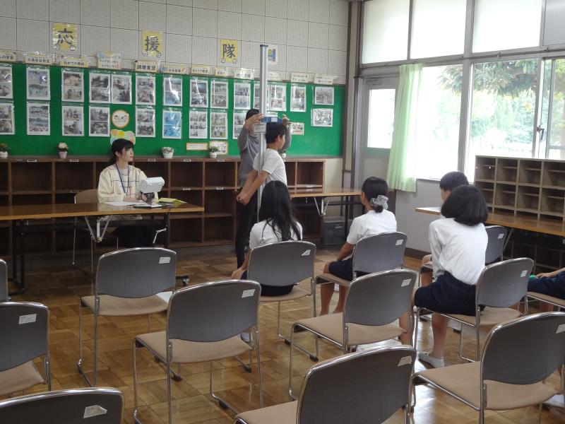 各クラスで係活動や当番活動が軌道に乗り始めました。毎朝、クラスの健康観察を保健室の入口にある戸棚へ届けに来てくれます。届けに来てくれる子どもたちと廊下ですれ違うと「おはようございます。」の挨拶も一緒に届けてくれます。気持ちの良い一日の始まりです。 あああ今日の発育測定は、4年生です。順番を待つときは、一人ずつ椅子に座って静かに待ちます。どのくらい成長したのか楽しみです。