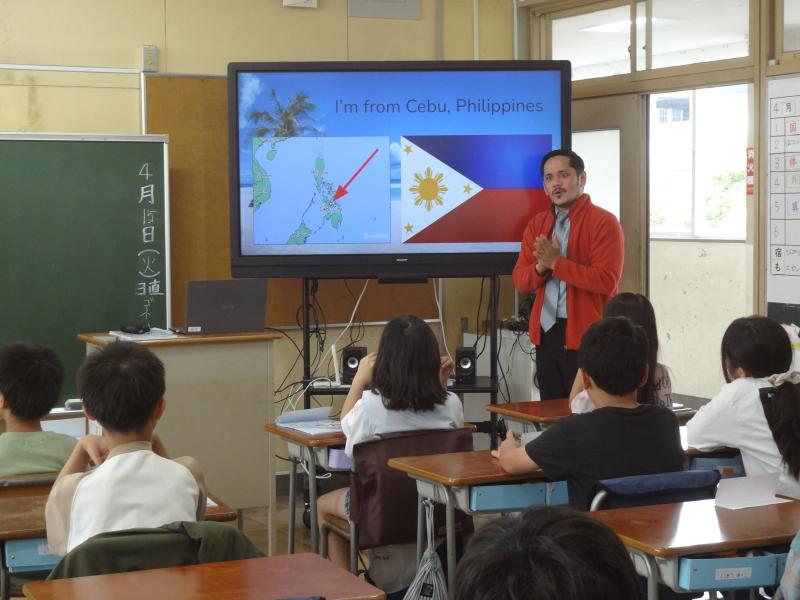 そして、今日から外国語の学習でお世話になるALTの「アラン グラナダ」さんです。フィリピン出身の先生です。子どもたちのとっても初めましての先生です。