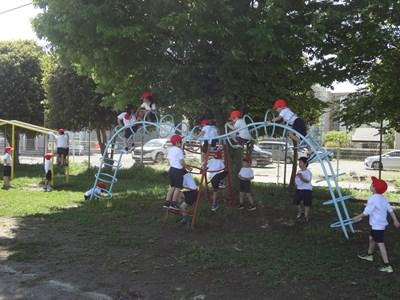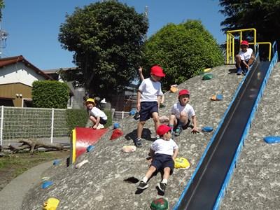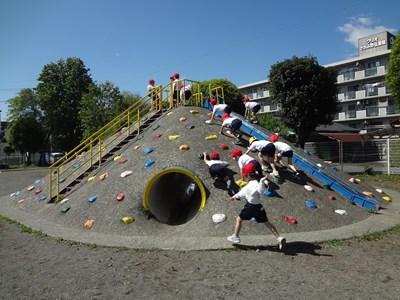 ああああ子どもたちが楽しみにしていた「子どもの丘」です。本校自慢の遊具です。夢中になって登っていました。