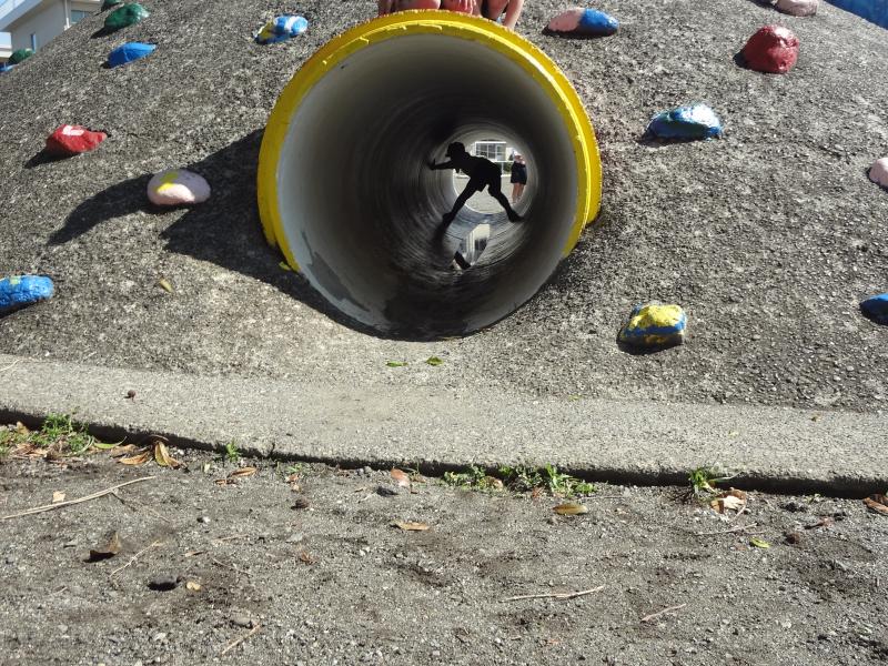山の下に長い土管があります。怪我をしないようにたくさん遊んでくださいね。