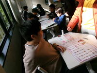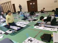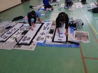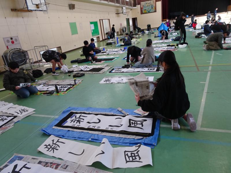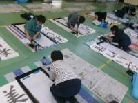 今日は、5年生と6年生です。5年生は「新しい風」、6年生は思い思いの四字熟語を真剣に書きました。