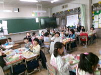 1年生は、学年全員で集まって「こいのぼり集会」を行いました。歌を歌ったり、紙芝居を聞いたりして、楽しい時間を過ごしました。