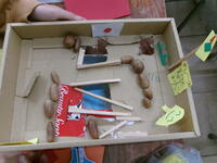 絵を描き終わると、折り紙で好きなものを作りました。2色でできたきれいな棒、ひまわり・・・「(友達に)教えてもらったよ!」「ここは小物入れになっているんだよ!」と出来上がった作品にうれしそうです!