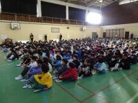 8日の3学期始業式は、全校児童が体育館に集まって、顔を合わせて行いました。