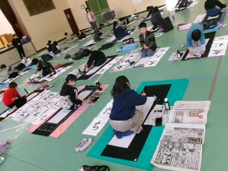 今日は、3・4年生の書き初めでした。3年生は「友だち」、4年生は「美しい空」を一筆一筆書いていきました。