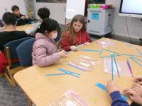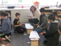 2年生は、手作り楽器を作っていました。机の上や子どもたちの手には、個性豊かな楽器たちが!楽しそうに音を鳴らしていました。