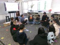 動作を入れながら、お手伝いのやり方を説明します。靴を靴入れにしまうこと、お風呂洗い・・・「この靴は、ここにしまうとか決まっていますか?」など質問も活発に出ていました。