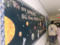 1年生の廊下には、うろこに1人1人の顔が描かれたこいのぼりが泳いでいます!