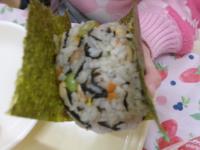 「見て~!こんな形。」「こんなに大きいよ!」とにぎったおにぎりを満足そうに見せてくれました。