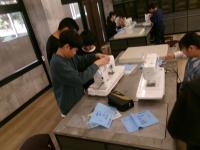 針に糸を通すのに苦戦・・・中には、糸通しの名人がいて、さっと通して、みんなから驚かれていました。