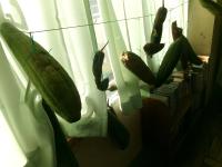 4年生の教室では、大豊作だったへちまを乾燥させています。