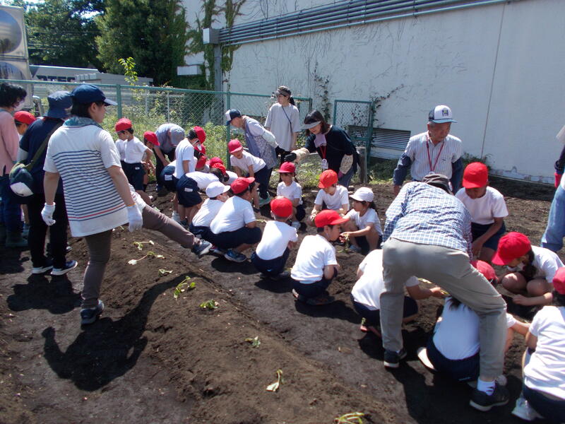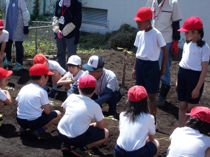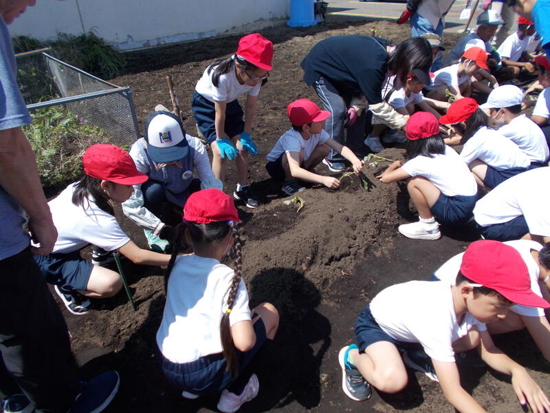 2年生が学校の畑にサツマイモの苗を植えました。「おいしくな~れ!」の声がサツマイモに届いたかな?
