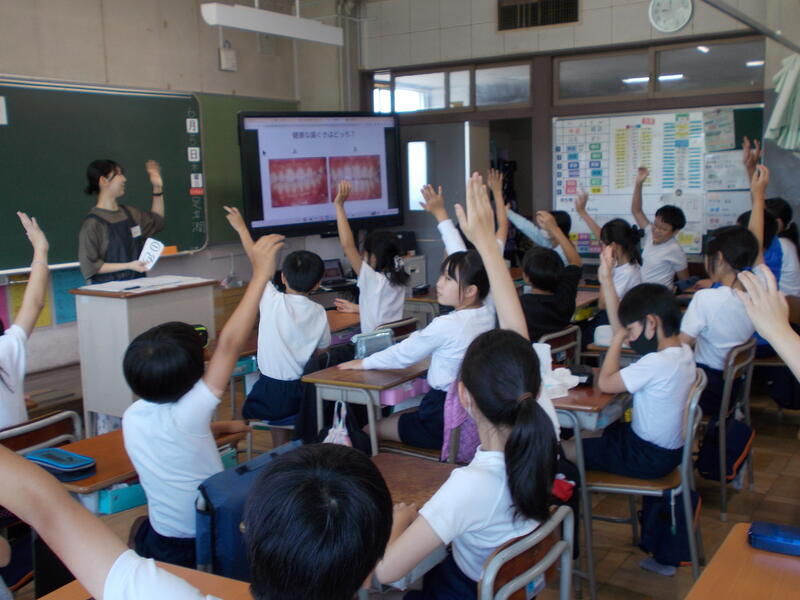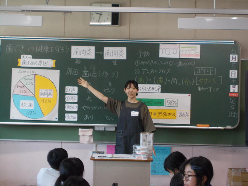 5日には、6年1組にて、「歯ぐきの健康を守ろう」という題材の保健指導の授業がありました。