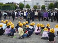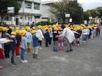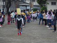 防災ずきんをかぶり、おしゃべりせずに速やかに避難ができました。いつ大きな地震が起こってもしっかりと避難できるように訓練しておくことが大切です。