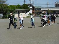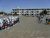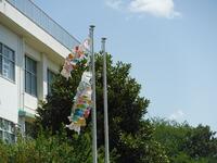 4月27日(火)3校時に1年生が作った「鯉のぼり」をグラウンドに掲揚して、「こいのぼり」のうたを合唱しました。