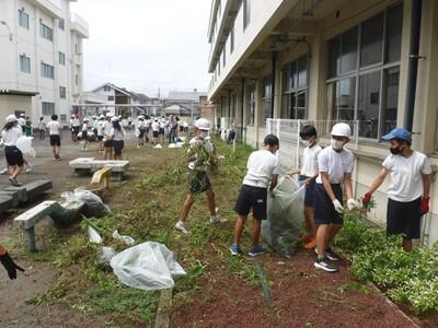8月30日(火)1校時に2年生が、4校時に6年生が雑草取りを行いました。