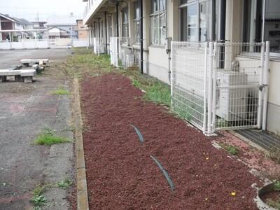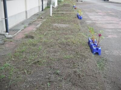 コミュニティ・スクールの学校応援隊の方にもたくさんご協力いただいて、昇降口前と中庭の雑草が見違えるほどきれいになりました。
