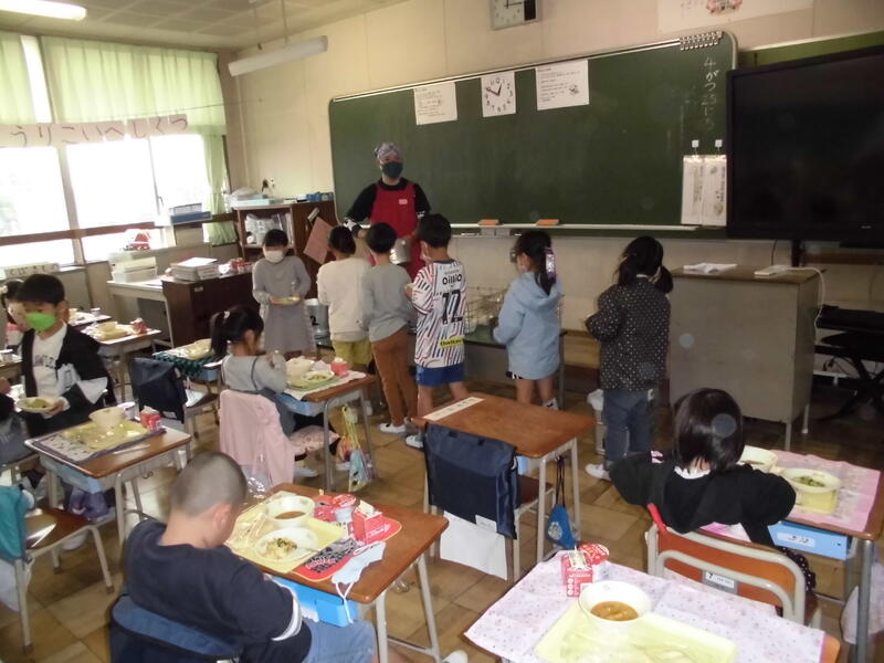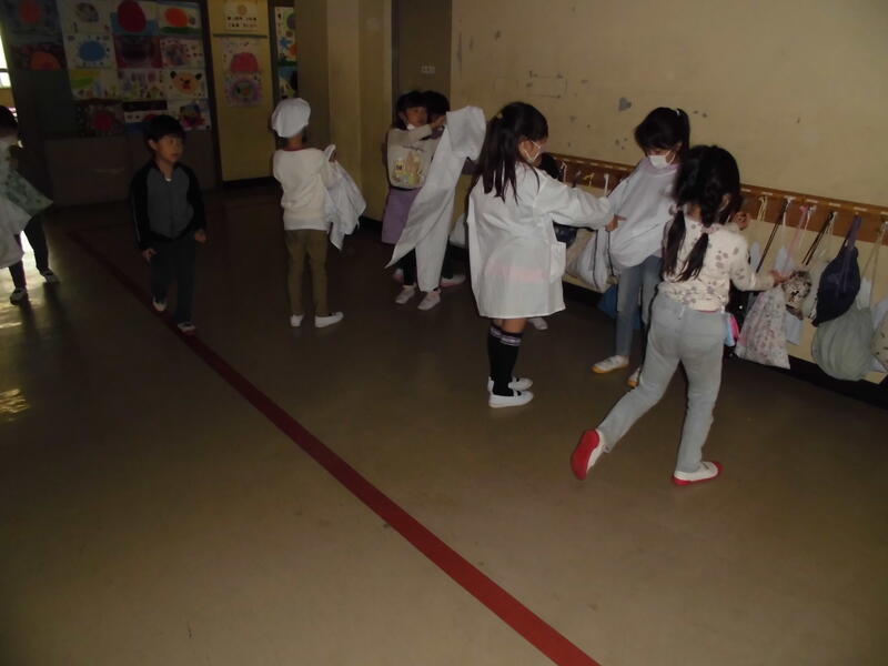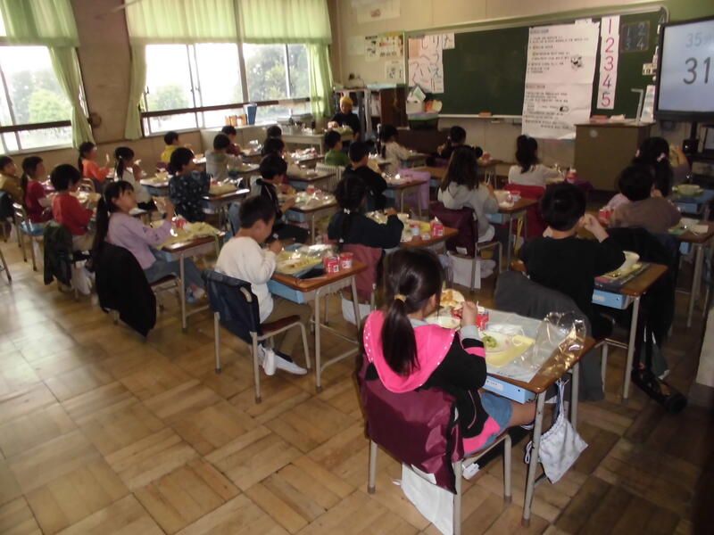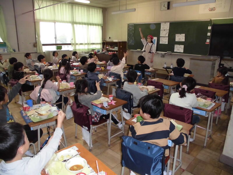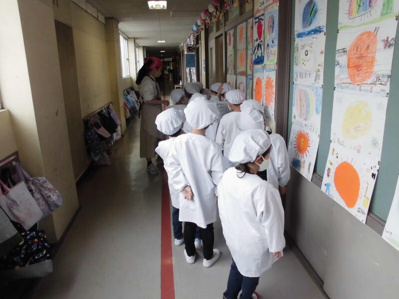 今日は、1年生の初めての給食です。昨日は、給食の練習をしました。